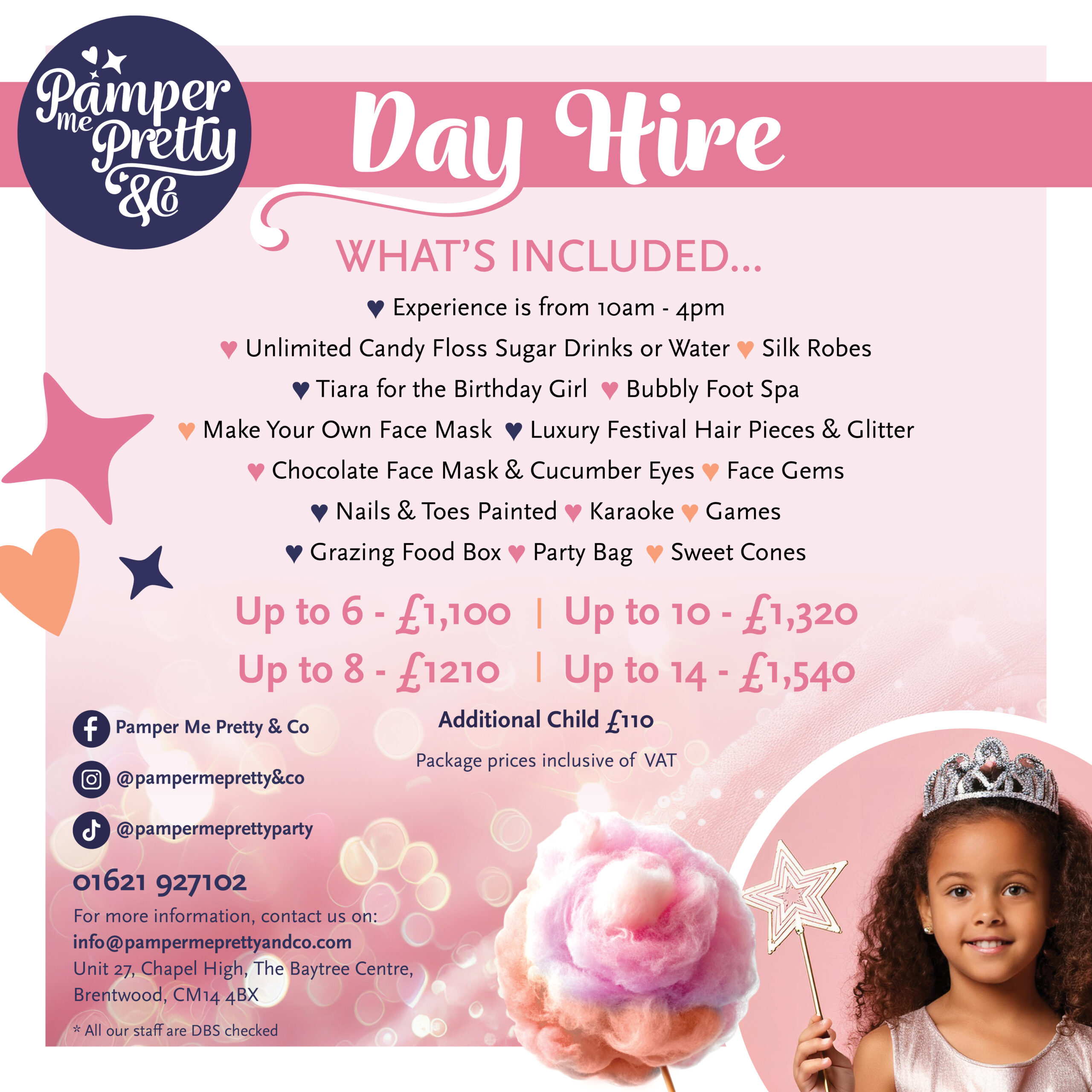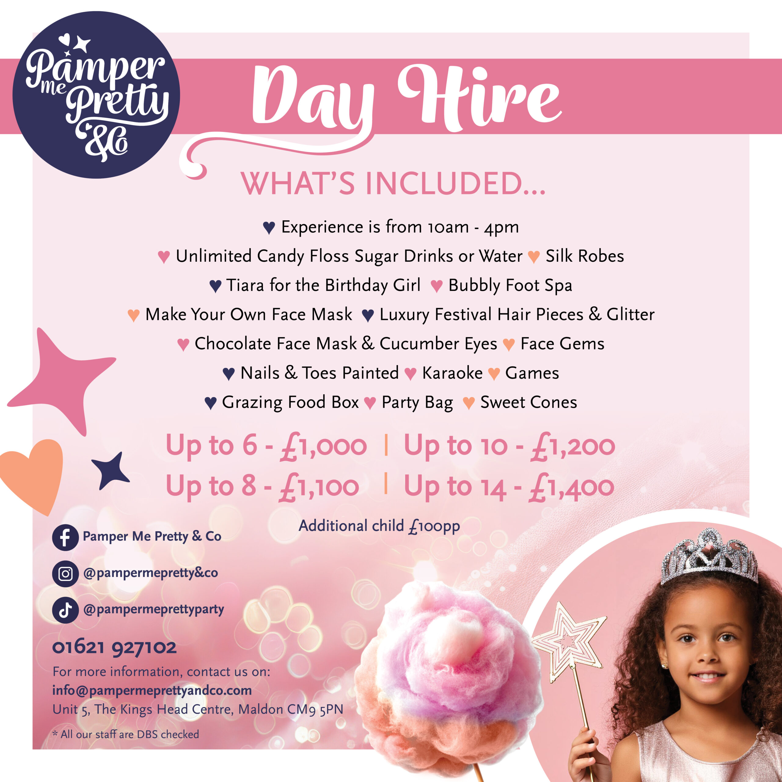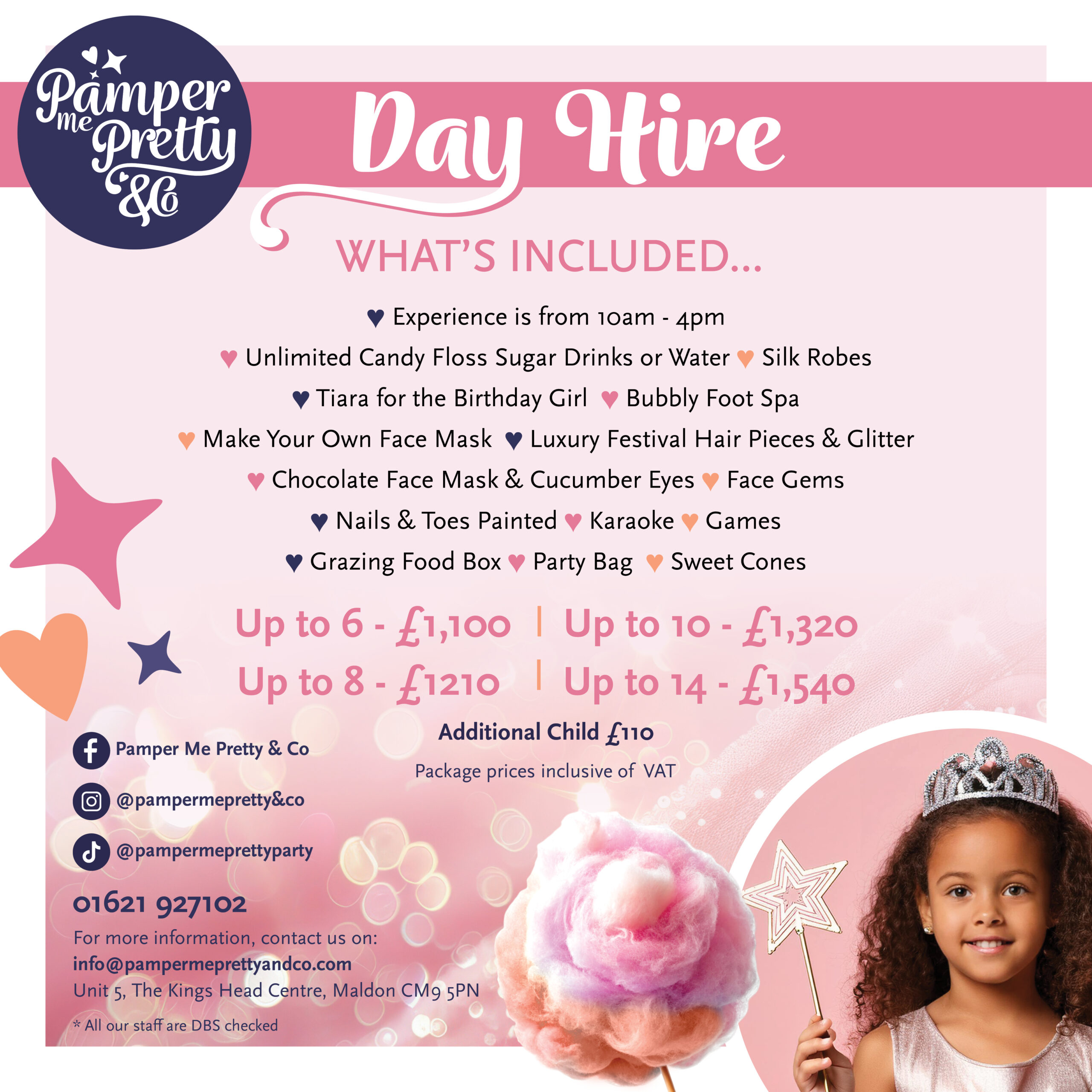 My daughter loves it here! She gets treated like a princess and leaves absolutely beaming. She has had a pamper session and attended the Elsa & Anna event. She is now on count down to the Barbie special. Her and all of her friends are desperate to have their next birthday parties here.